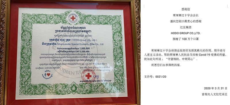 柬紅會(huì)舉行紅豆集團(tuán)捐贈(zèng)100萬(wàn)口罩接收儀式 我謹(jǐn)向您(周海江)致以最衷心的感謝……就如此句所說(shuō):‘守望相助,中柬同心’