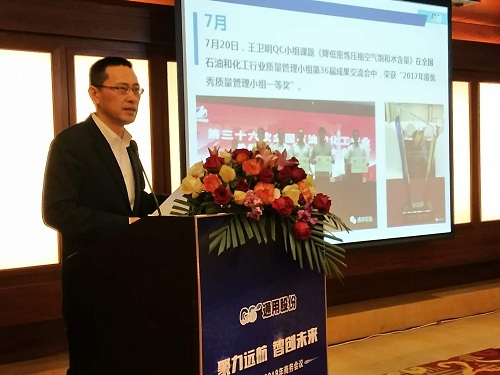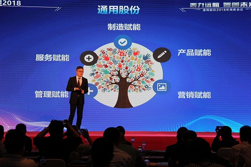 通用股份董事長顧萃先生在會議上作了“賦能2018”的重要主題演講?;厥?017,顧董對宏觀經(jīng)濟和行業(yè)情況進行了生動解讀。展望2018,顧董以“大、新、快、鏈”四個字闡述了當下時代的發(fā)展趨勢,探討了智能化以及創(chuàng)新思維對未來工業(yè)和生活的深遠影響。通用股份將從“制造、產(chǎn)品、營銷、管理、服務”五大賦能促進變革發(fā)展,搶占先發(fā)優(yōu)勢,智能制造升級,全球化視野布局,全方位提高效率,做最好的自己。