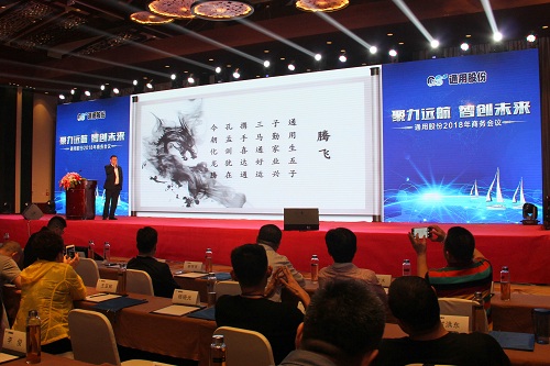 榮成市隆通貿(mào)易有限公司總經(jīng)理張黎明在大會上作了題為“騰飛 2018”的主題演講,他從定位、服務、客戶管理三個渠道入手,向與會者分享了成功的營銷經(jīng)驗和營銷體系構(gòu)建案例,為代表們?nèi)蘸笤谑袌錾瞎コ前握峁┝丝蓪嵤┬缘膮⒖冀?jīng)驗。