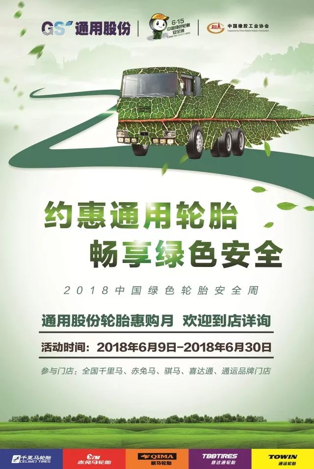 為了讓更多的普通消費(fèi)者了解什么是綠色節(jié)能輪胎,輪胎標(biāo)簽的作用,以及輪胎安全使用知識,同時(shí)也為了答謝消費(fèi)者長期以來的支持,通用股份在全國通用品牌門店(千里馬、赤兔馬、通運(yùn)、騏馬、喜達(dá)通)開展“約惠通用輪胎 暢享綠色安全”的輪胎惠購活動(dòng)(2018年6月9日至6月30日),并采取滿減優(yōu)惠、幸運(yùn)抽獎(jiǎng)、好禮相送等形式,以實(shí)實(shí)在在的優(yōu)惠,與消費(fèi)者共同擁抱安全出行。