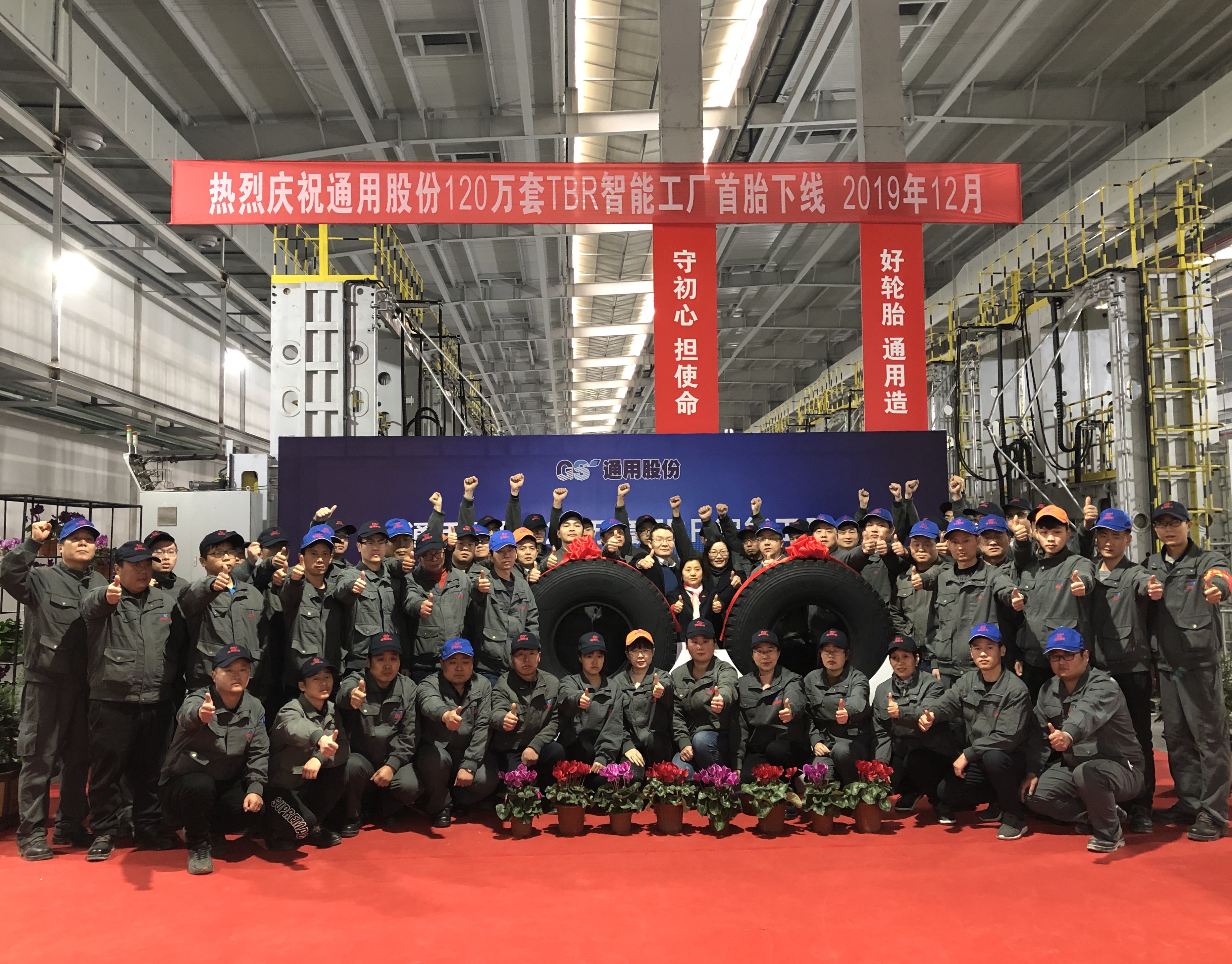 12月27日上午,通用股份120萬套TBR智能工廠首條全鋼子午線輪胎正式下線。下線首胎為通運(yùn) 12.00R20—XR856。通用股份董事長顧萃,常務(wù)副總經(jīng)理程金元、生產(chǎn)板塊總經(jīng)理虞秀鳳等領(lǐng)導(dǎo)出席了本次儀式。