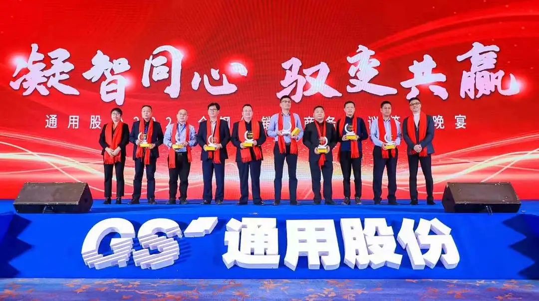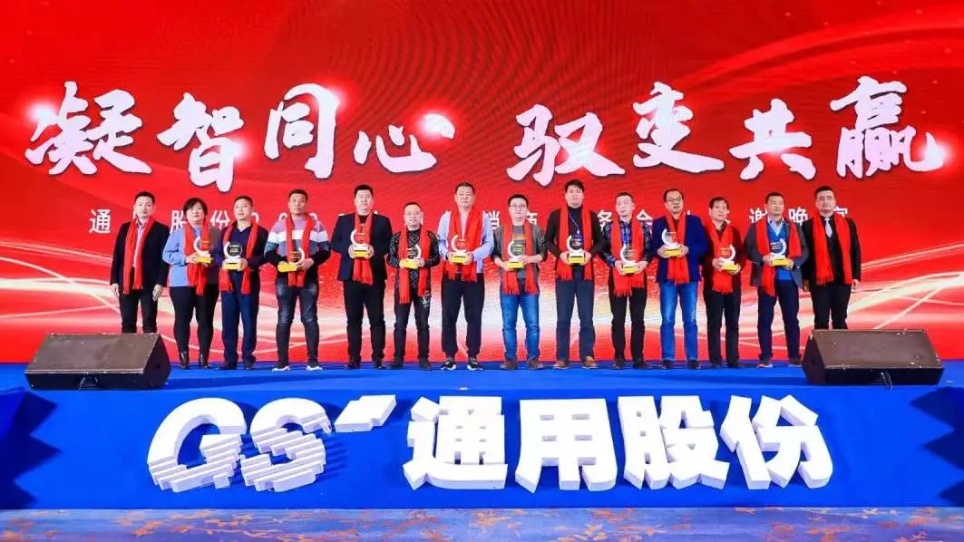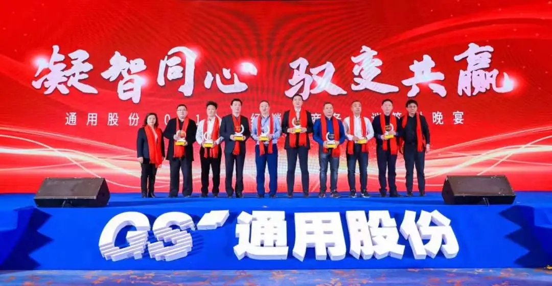 唯創(chuàng)新者強,唯進(jìn)化者勝。本次會議隆重表彰了為通用股份發(fā)展貢獻(xiàn)力量的經(jīng)銷商合作伙伴,晚宴現(xiàn)場頒發(fā)了2020年度潛力經(jīng)銷商獎、先進(jìn)經(jīng)銷商獎、優(yōu)秀經(jīng)銷商獎、杰出經(jīng)銷商獎等獎項。他們以高昂的斗志馳騁跨越,在商海的競爭中勇立潮頭,乘風(fēng)破浪,他們是通用股份親密無間的合作伙伴,一座座獎杯記錄了他們的榮譽和付出,會議現(xiàn)場氣氛不斷推向高潮!