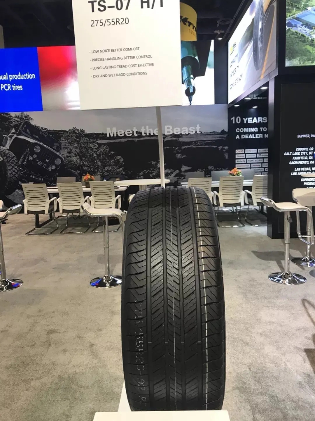 通用股份TBBTIRES品牌登陸美國市場以來,銷量不俗,深受國外市場青睞,參展的觀眾也經(jīng)常針對性的參觀并咨詢相關(guān)問題。本次SEMA展會上,TS-07H/T、TS-37 A/T等一系列性能優(yōu)異的輪胎產(chǎn)品受到了外國客戶們的一致好評。