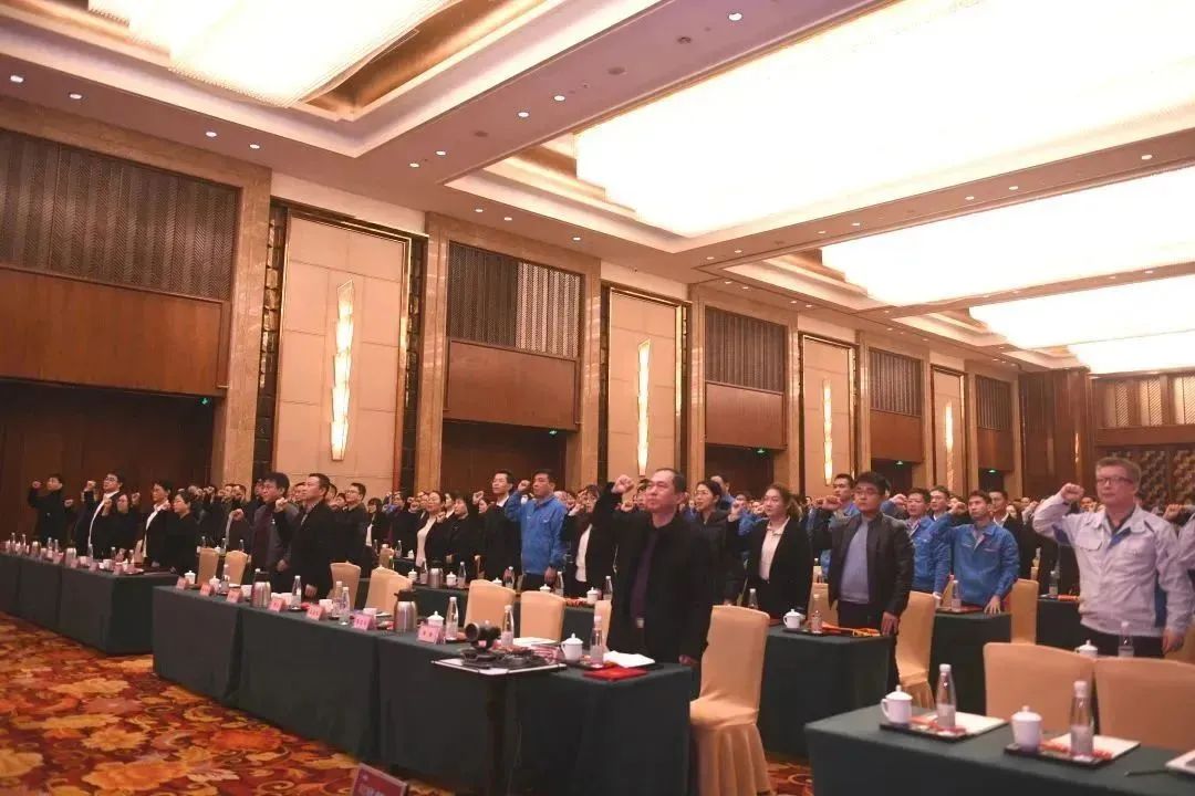 龍行龘龘、大干一場!新征程號角已吹響,戰旗正飛揚。會議最后,各版塊負責人以及全員進行誓師環節。“百億通用、勇攀高峰;全力以赴,使命必達......”鏗鏘有力的口號,傳遞了通用股份積極向上、拼搏進取的昂揚斗志與龍馬精神!