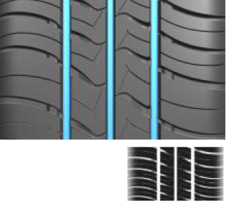 ·采用加寬的主溝設計,提開雨天行駛溫滑路面的排水性能。